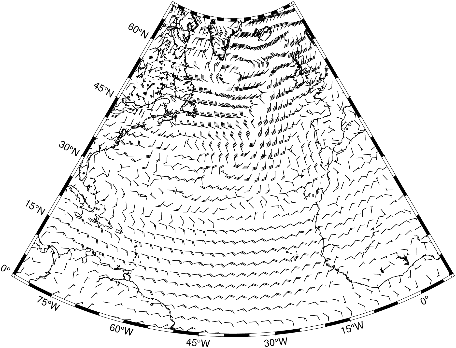 Only plot wind barbs at nodes every x_inc, y_inc apart (must be multiples of original grid spacing). Append m for arc minutes or s for arc seconds. Alternatively, use inc=“x” to specify the multiples multx[/multy] directly [Default plots every node]. Example inc=“x10/5” to select every other 10 nodes in x and 5 nodes in y. NOTE: by default we estimate good values so that the arrows do no overlap so you may start by jumping this option unless some fine control is desired.