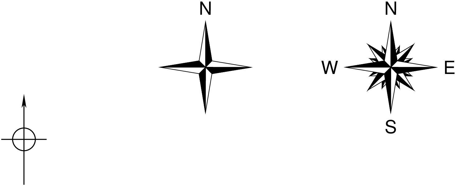 Draw a map directional rose or magnetic compass on the map.