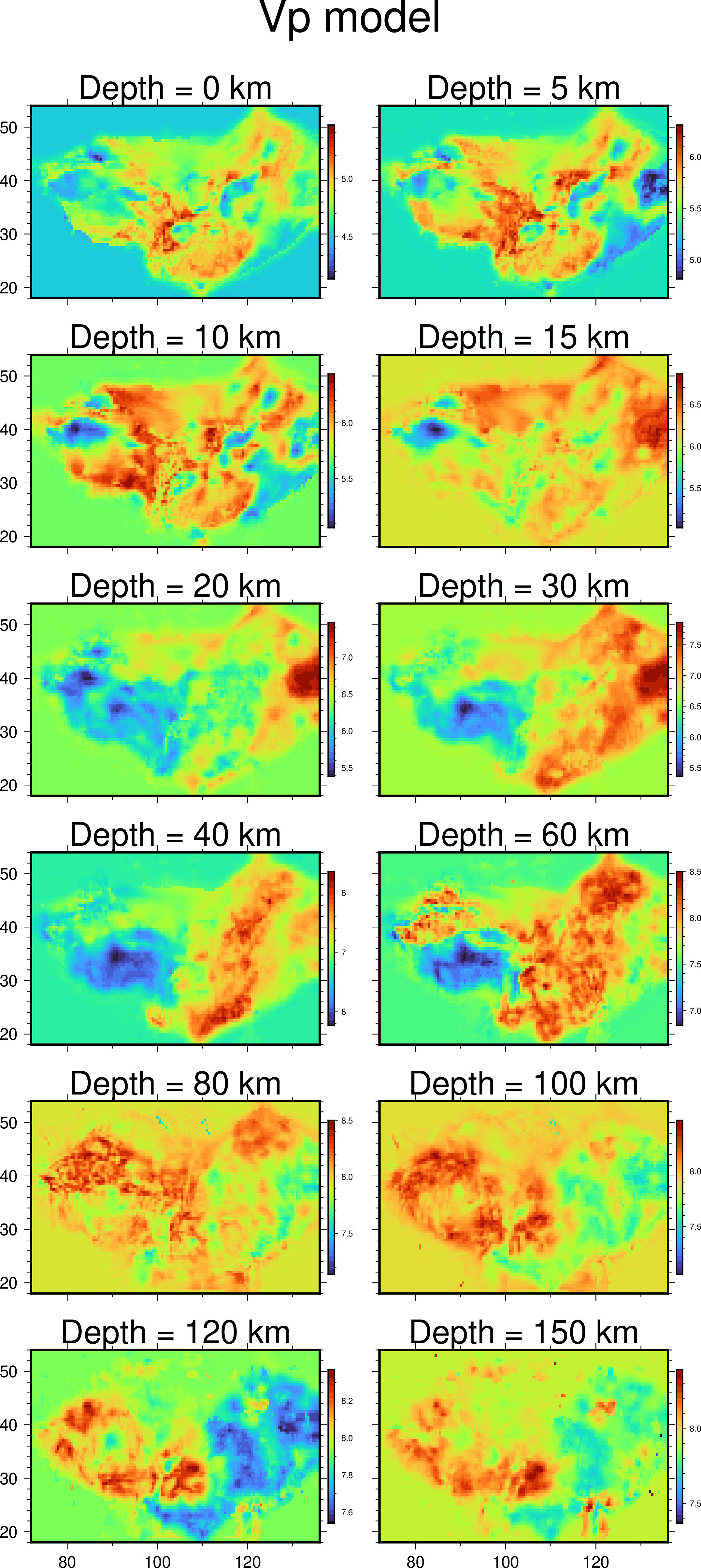 Cvp.names = ["Depth = $(Int(i)) km" for i in Cvp.v];