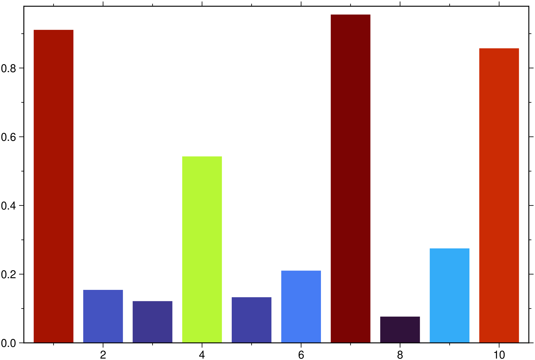 Reads (x,y) pairs and plots a bar graph. This module is a subset of plot to make it simpler to draw bar plots. So not all (fine) controlling parameters are listed here. For a finer control, user should consult the plot module.