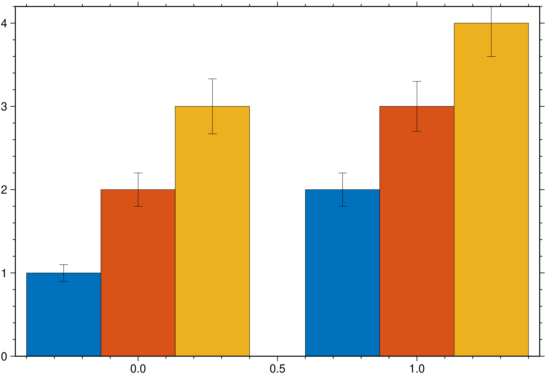 If input is a MxN array and N > 2 it will plot a bar-group with M groups and N-1 bars in each group (first column holds always the coordinates).