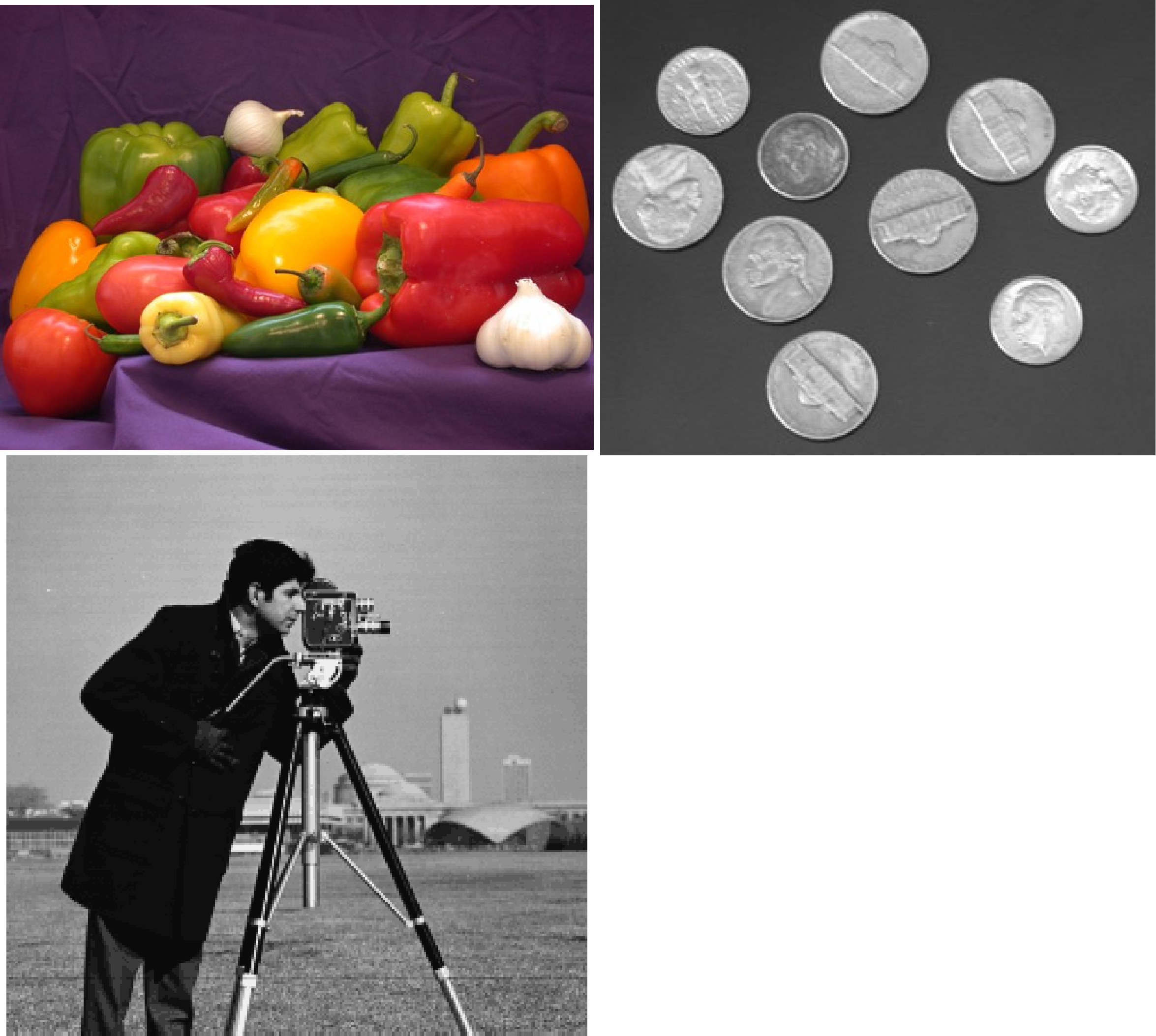 montage([tests("peppers"), tests("coins"), tests("cameraman.png")])