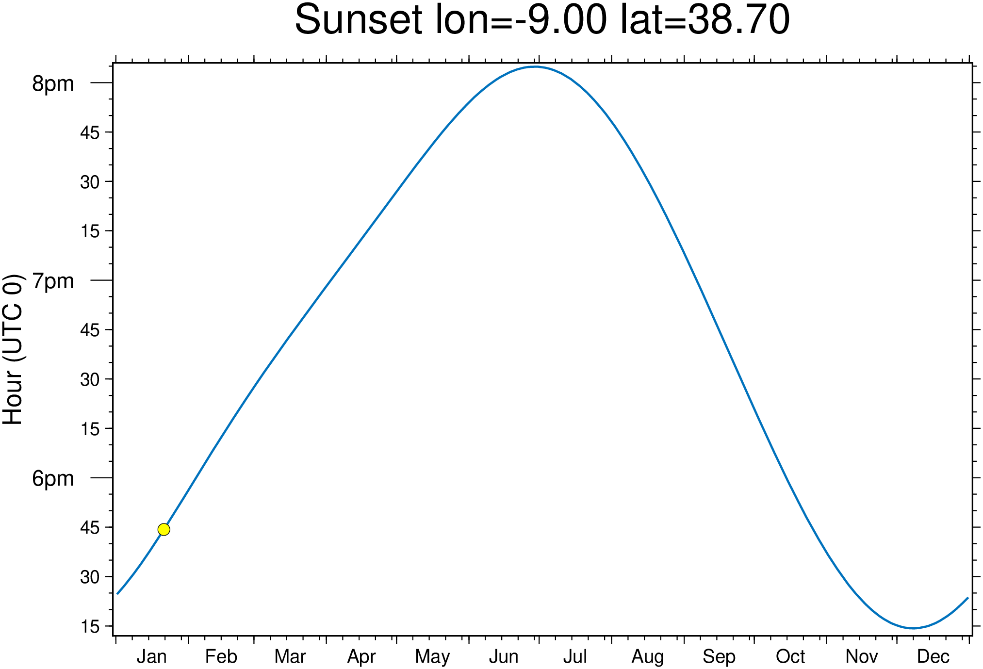 sunsetrise(lat=38.7, lon=-9)
