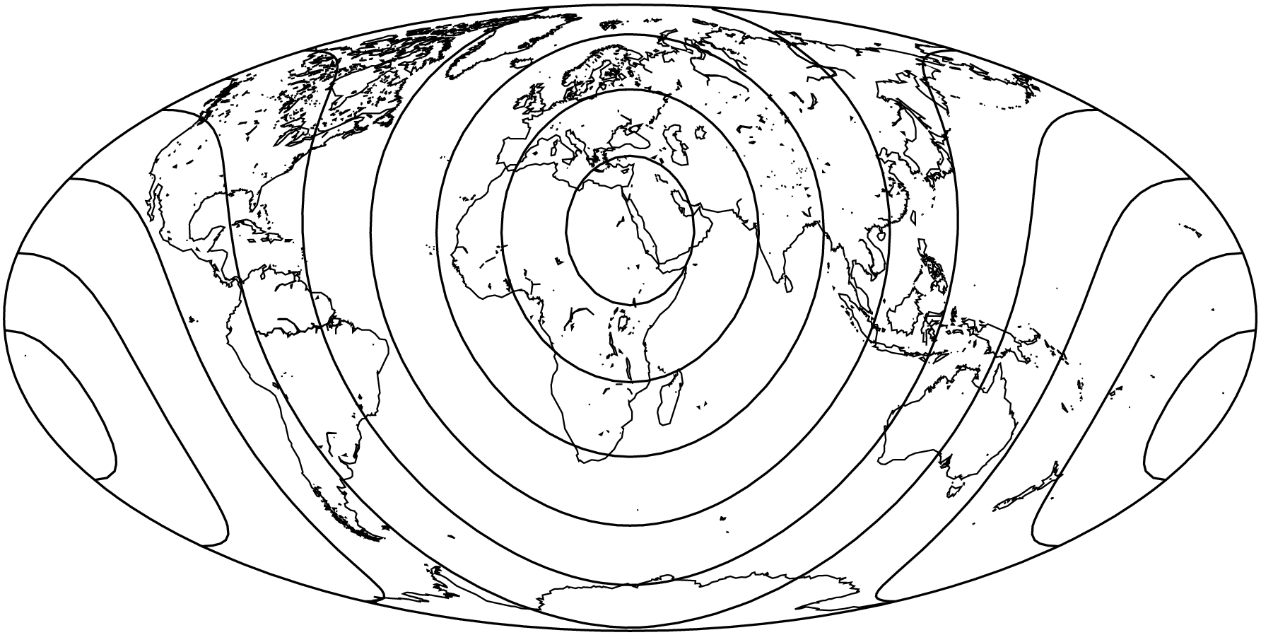 Creating a periodic 0/360 grid then selecting a central meridian for a contour map.