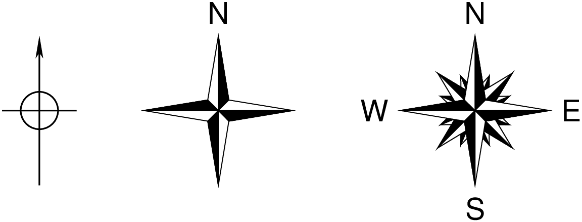 # Bare-bones plain rose showing arrow towards north and a cross indicating the cardinal directions
