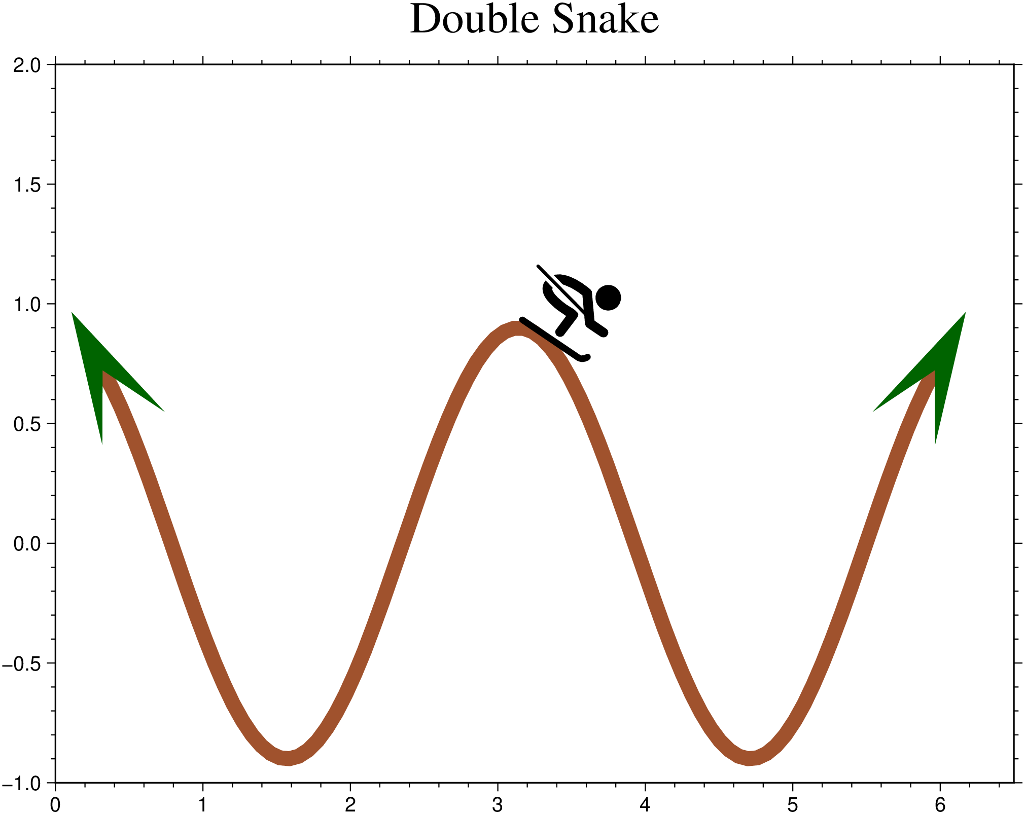 Plot a skier on a sinusoid.