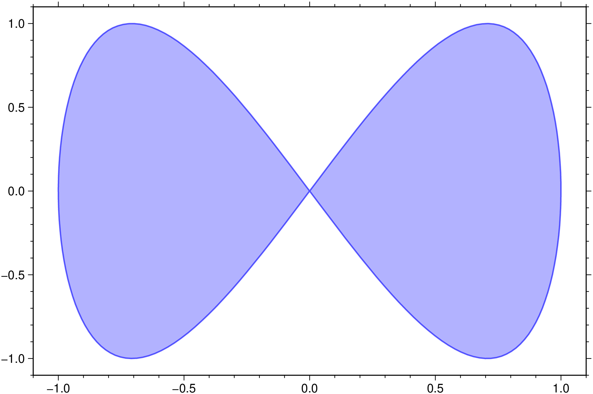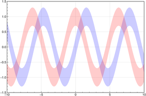 Fill the area between the two sinc functions. Here we use the default values for line thickness and fill color but all of that can be changed. We also add a thin white border arround tke lines.