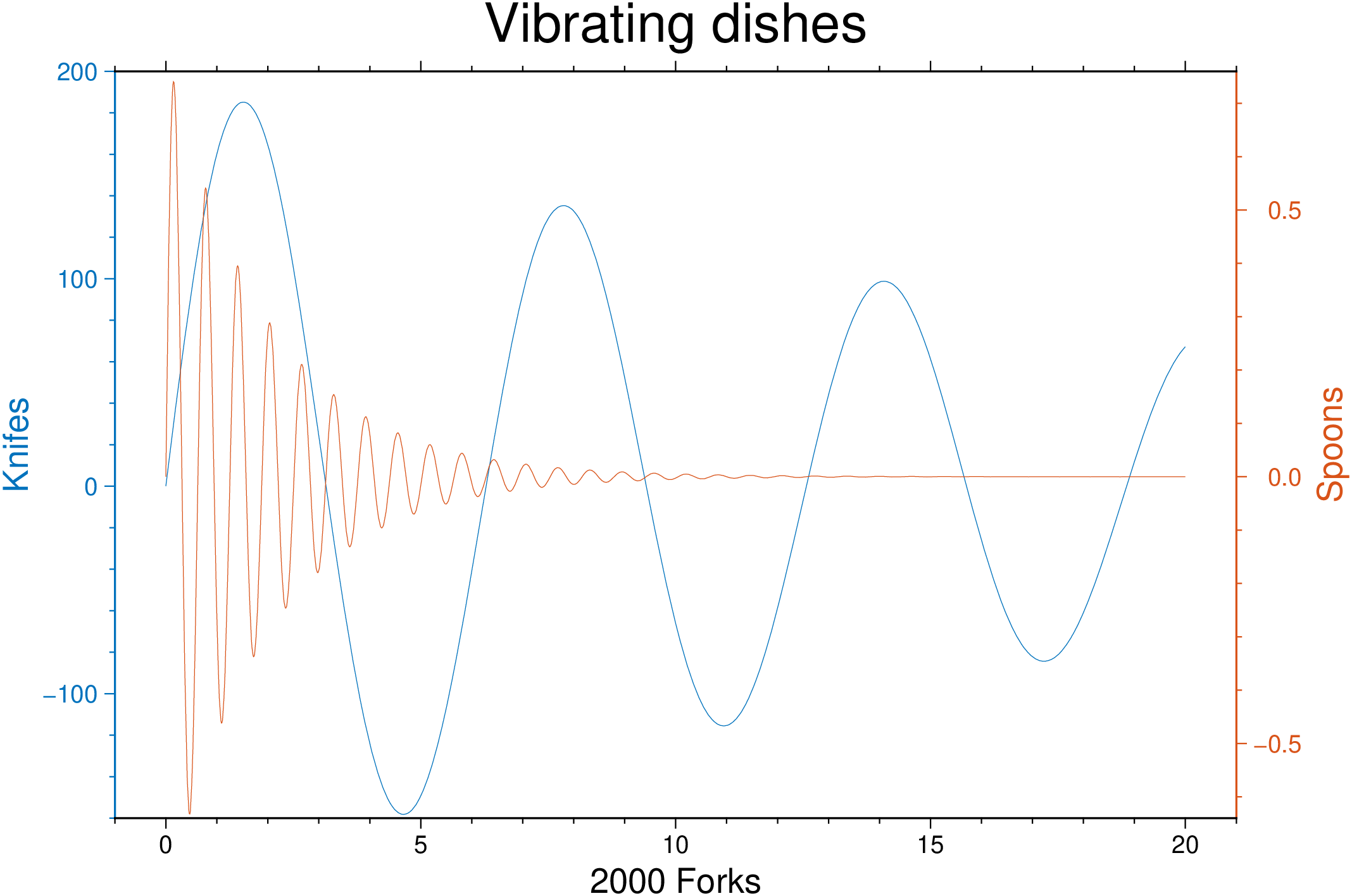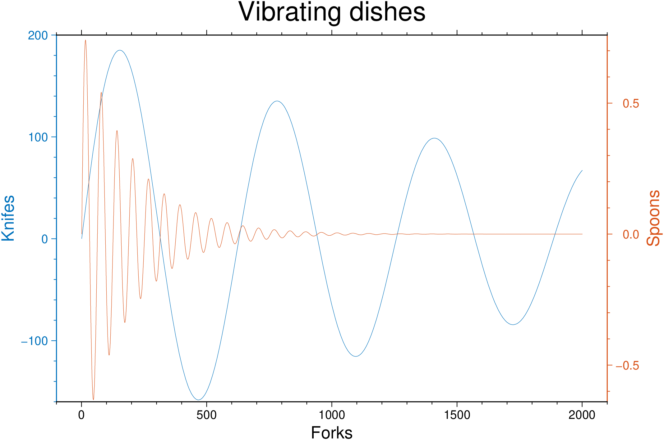plotyy(y1, y2, title="Vibrating dishes", ylabel=:Knifes, xlabel=:Forks,