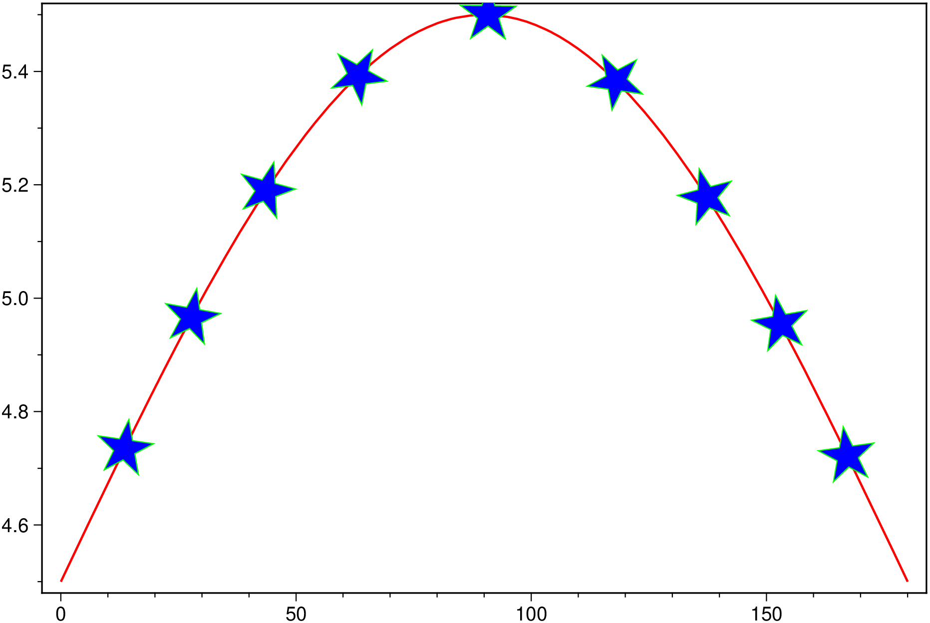 xy = gmt("gmtmath -T0/180/1 T SIND 4.5 ADD");